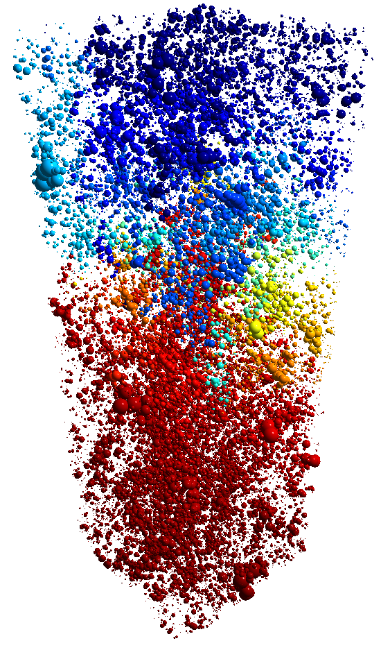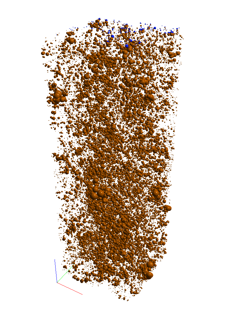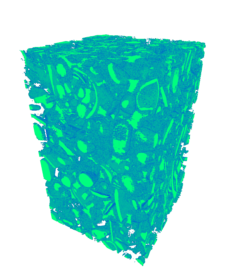 Результатом съемки является трехмерное изображение в градациях серого. Изображение должно быть сегментировано на пустотное пространство и твердую матрицу (одну компоненту или несколько). Пустотное пространство в свою очередь разделяется на кластеры связности (отдельные несвязанные друг с другом участки пустотного пространства). В дальнейшем каждый кластер связности пустотного пространства относится к